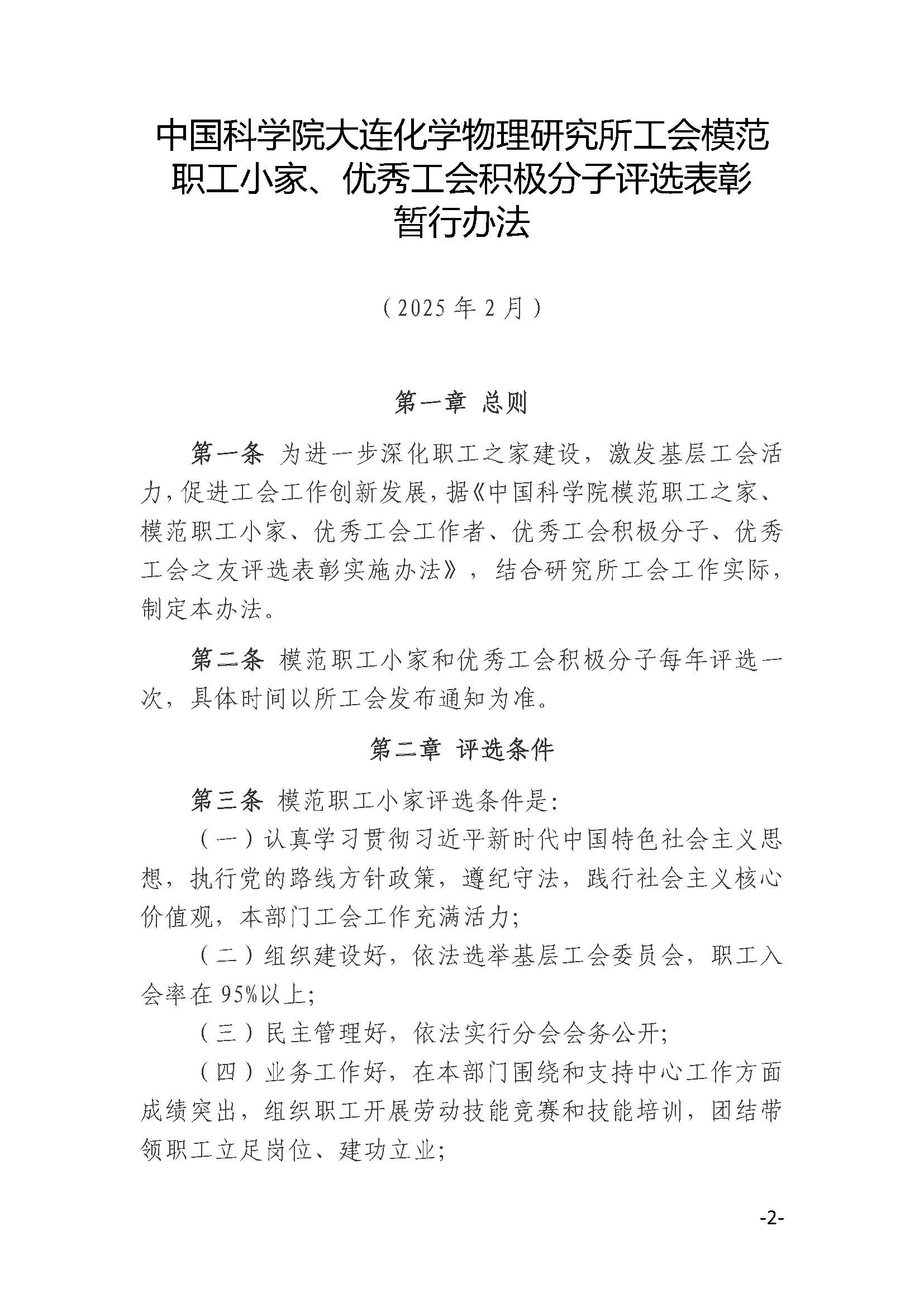 中国科学院大连化学物理研究所工会模范职工小家、优秀工会积极分子评选表彰暂行办法